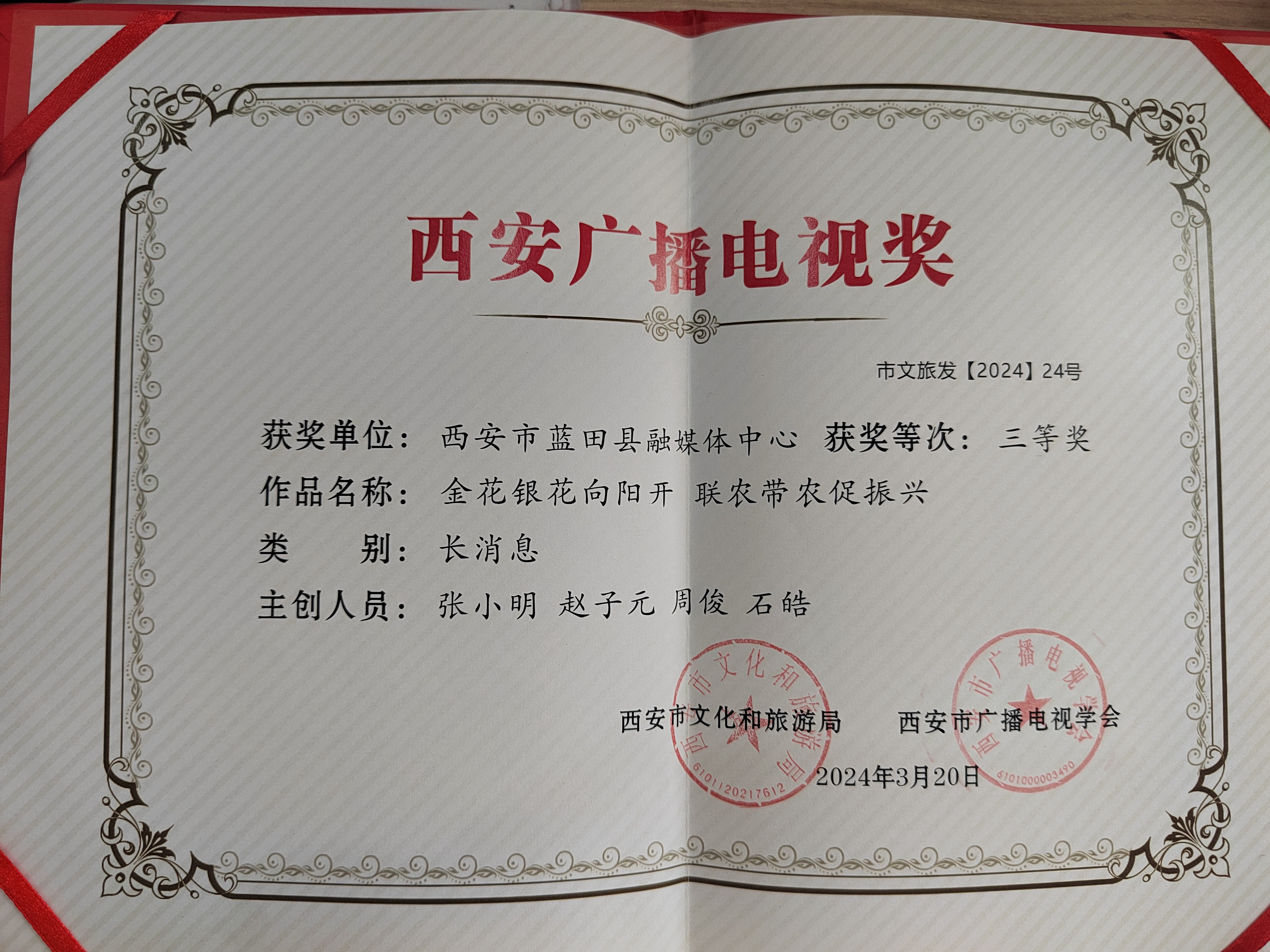 学习强国蓝田融媒号7件新媒体稿件被主站选用,10件新闻作品荣获“西安广播电视奖”二、三等奖。