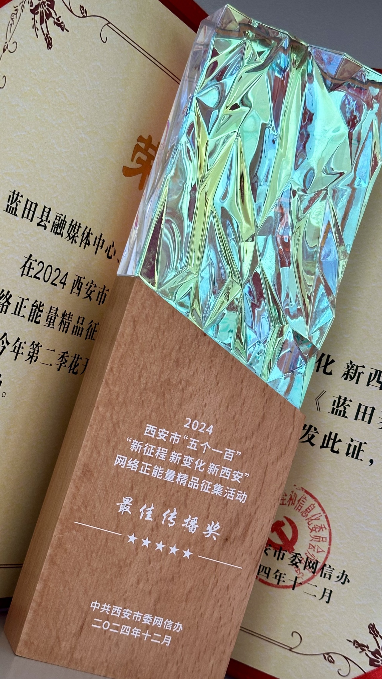 新媒体产品《蓝田荞麦岭 今年第二季花开怒放中》荣获2024年西安市“五个一百”--“新征程 新变化 新西安”网络正能量精品最佳传播奖。